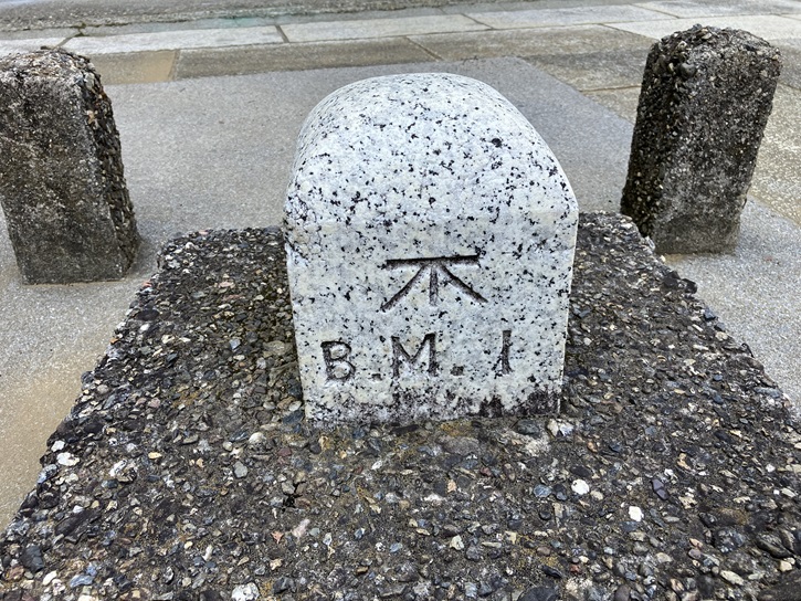 荒川1号水準点のそれぞれの面です。この水準点は、それまでに内務省が設置した荒川筋の水準点を補完する目的で昭和五年に新に荒川筋に設置された15ヶ所(内2ヶ所は入間川筋に設置)の水準点のひとつです。記録によれば、諏訪神社境内の基準点を1号とし、荒川の上流方向に向かって水準点の設置が行われたそうです。