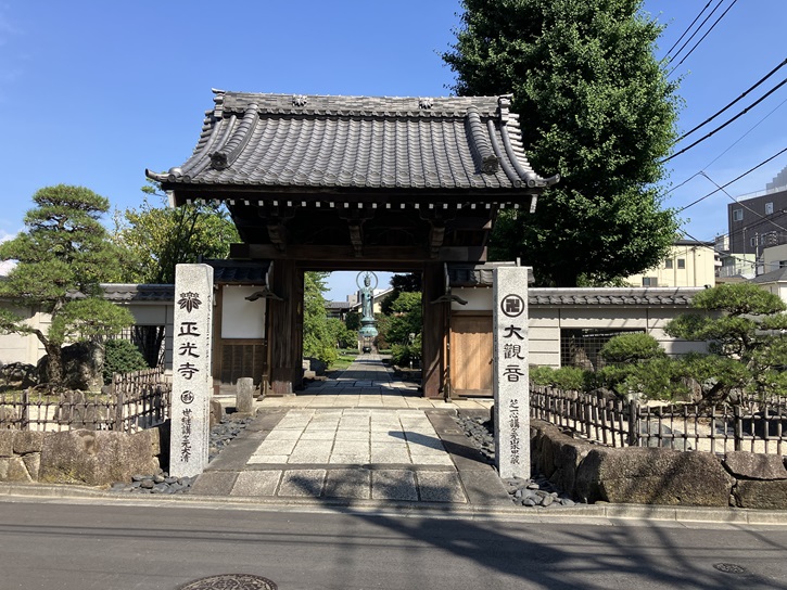 赤羽八幡神社から旧日光御成道・岩槻道を通って赤羽交差点に向かいます。交差点近くに「正光寺」があります。
