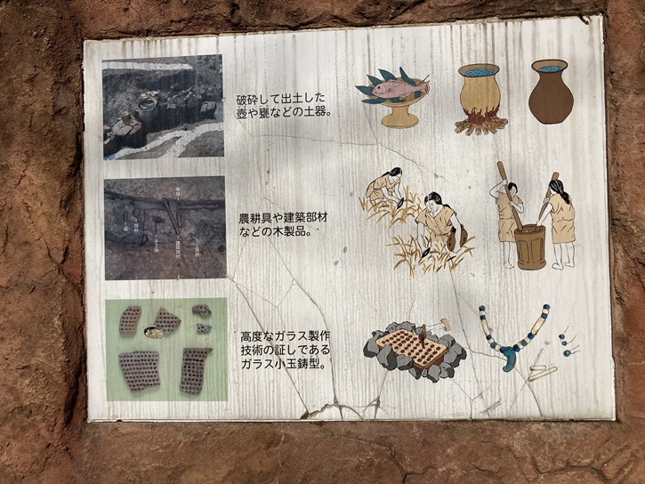 豊島馬場遺跡公園は、多くの遺跡が発見された公園で、平成三年から約6年間に亘って発掘調査が行われ、壷や甕などのたくさんの土器が見つかりました。その中でもガラス小玉鋳型は、高度なガラス製作技術の証であり、貴重な出土品だそうです
