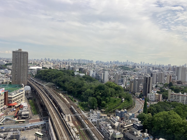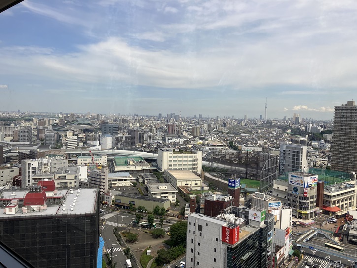 最上階の17階は展望ロビーになっていて、北区の景色を一望することができます。飛鳥山公園も眼下に一望できます。モノレールも見えますね。