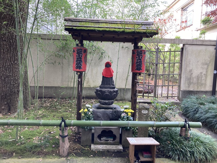 ことぶき地蔵尊は、交通安全と西ヶ原坂下通り商店街の繁栄を祈念して、昭和二十八年11月に建立されたものです。一度本郷通り沿いに移されましたが、平成二十七年に再び無量寺に戻されました。本郷通り沿いにあった頃は、夏の地蔵盆や毎月6の日の縁日で露店なども出て賑わったとのことです。