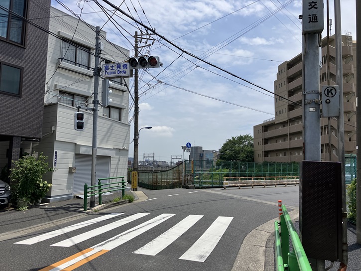 富士見橋は、道灌山の尾根を通る田端高台通りに架かる橋です。当初は橋ではなく、山手線のトンネルの上を通る道でしたが、山手線が複々線化した大正十四年(1925年)に橋となりました。その後、昭和四十二年(1967年)に現在の橋に架け替えられました。