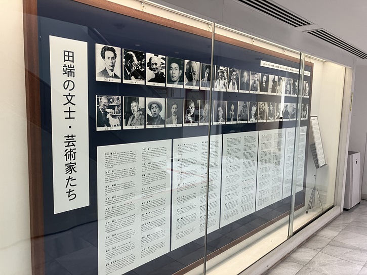 田端駅の向かいの田端アスカタワーの一階に、1993年11月に開館した田端文士村記念館があります。明治二十年(1887年)、上野に東京美術学校(現在の東京芸術大学美術学部)が開校した後、田端に芥川龍之介(小説家)・菊池寛(小説家・劇作家・ジャーナリスト)・小杉放庵(洋画家)・板谷波山(陶芸家)などの文士が集まって住むようになり、互いに影響しあいながら文化活動を行っていた歴史を記念し、彼らの功績や素顔を紹介するとともに、北区区民などの文化活動の拠点を提供する施設です。
