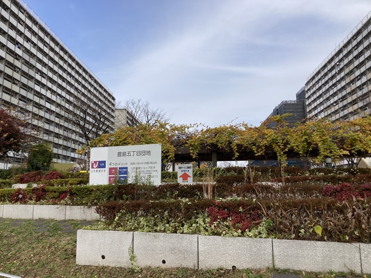 豊島五丁目団地は1972年から1973年にかけて造成されたURの団地です。大型で高層の住棟を中心に13棟・約5000戸からなり、周辺の住宅地も含めた人口は約1万人にも達しています。最寄りの駅は王子駅になりますが、距離があるためにバス便が充実しています。