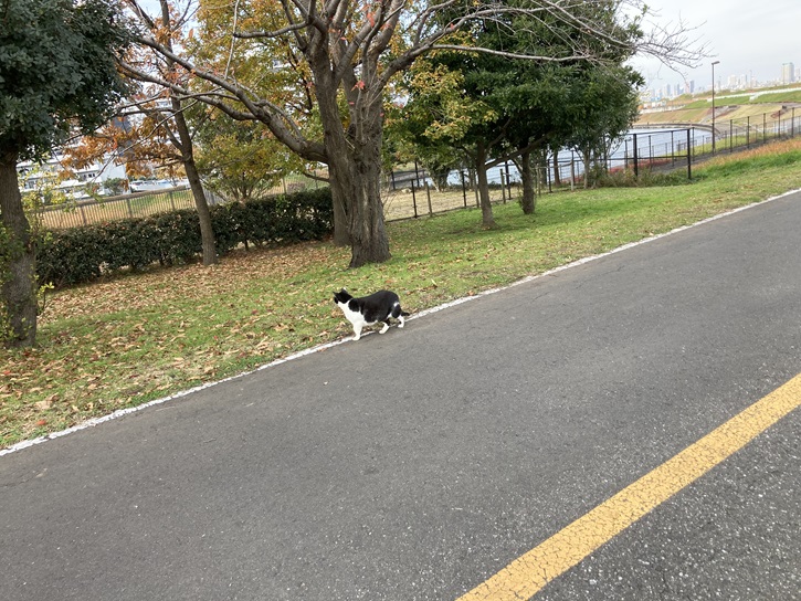 宮城ゆうゆう公園から「荒川土手」を進みます。猫ちゃんもお散歩です。
