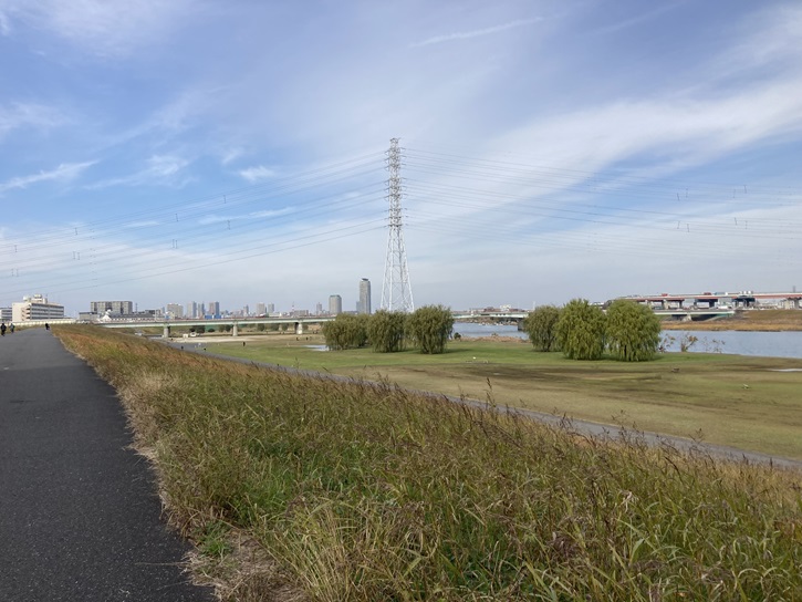 豊島橋を渡って、隅田川と荒川に挟まれた土手上の「宮城ゆうゆう公園」に向かいます。