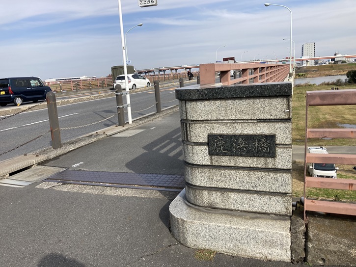 鹿浜橋は、荒川に架かる環七通りの橋です。大正十三年(1924年)に開削された荒川放水路に架かる最上流に位置する橋で、昭和四十年(1965年)2月に完成しました。総延長は922メートルで、橋桁に付帯設備として内径1.2メートルの水道管を4本(送水本管2本、工業用水道管2本)を併設し、荒川を横断する水道橋の役割も持っています。橋名は、南岸の足立区新田一・二丁目と北岸の足立区鹿浜一・二丁目をつなぐことから、旧足立郡の鹿浜村・鹿浜新田の地名に因んでいます。荒川放水路が開削される前は地続きだったんですね。