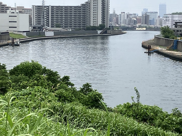 隅田川の対岸には豊島五丁目団地が眺められ、荒川に架かる五色桜大橋も絶景です。