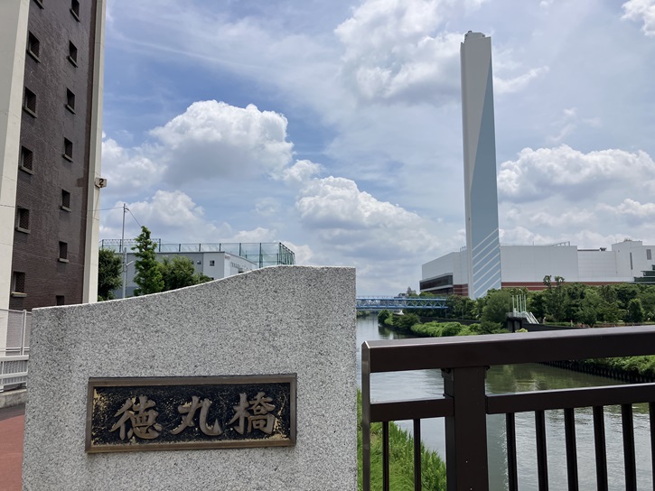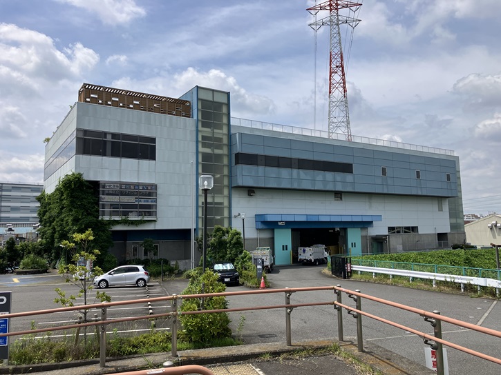 リサイクルプラザから「熱帯環境植物館グリーンドームねったいかん」に向かいます。新河岸川に架かる徳丸橋の下流右岸に板橋清掃工場の煙突が聳えています。現在の板橋清掃工場は三代目で、平成十四年(2002年)に竣工しました。稼働を始めてから20年が経過しますが、建物はとても綺麗です。何より、工場の敷地内には多くの樹木が植えられていて、森の中の工場といった感じです。