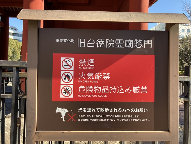 門内に安置されている金剛力士(仁王)像は元々は埼玉県川口市の西福寺にあったもので、昭和五十三年(1978年)に浅草寺に譲渡され、さらに昭和三十三年(1958年)頃に現在の惣門に移されたものです。