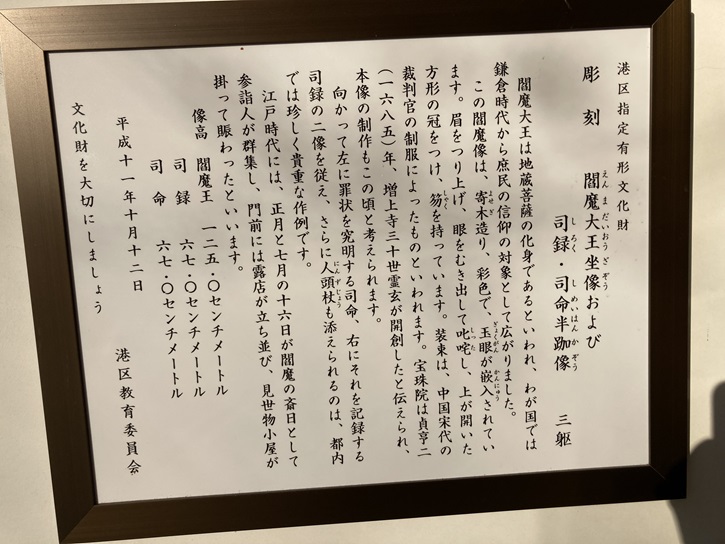 宝数院には、徳川家康公所蔵の開運出世大辨財天と高さ2mもある木彫りの閻魔大王の像(港区指定文化財)が祀られています。