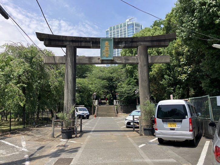 芝東照宮は芝公園の一画にあり、元来は増上寺内の社殿でした。徳川家康は慶長六年(1601年)に還暦を迎えた記念に、自らの像を刻ませた「寿像」を駿府城に祀っていました。元和二年(1616年)、家康は死去に際して「寿像」を祭祀する社殿を増上寺に建造するよう遺言しました。社殿は、同年の10月に着工し、翌年2月に竣工しました。この社殿は、家康の法名「安国院殿徳蓮社崇誉道和大居士」から「安国殿」と呼ばれました。これが芝東照宮の起源となっています。その後、三代将軍家光により寛永十年(1633年)に新社殿が造営され、旧社殿は開山堂となりました。寛永十八年(1641年)には移転改築がなされ、駿府城から惣門・福岡藩主黒田忠之が寄進した鳥居が移築され、本殿の周囲には拝殿・唐門・透塀が造営されて豪奢な社殿が整いました。明治初期の神仏分離令により、増上寺から切り離されて芝東照宮となりました。本殿は大正四年(1915年)に特別保護建造物に指定されましたが、昭和二十年(1945年)5月25日の東京大空襲によって「寿像」と神木のイチョウを残し、あとは全て焼失しました。現在の社殿は、昭和四十四年(1969年)に再建されました。