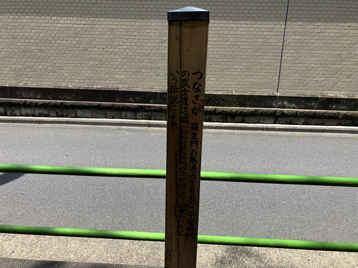 つなざか 羅生門の鬼退治で有名な、平安時代の武士渡辺綱(わたなべのつな)が付近に生まれたという伝説による。