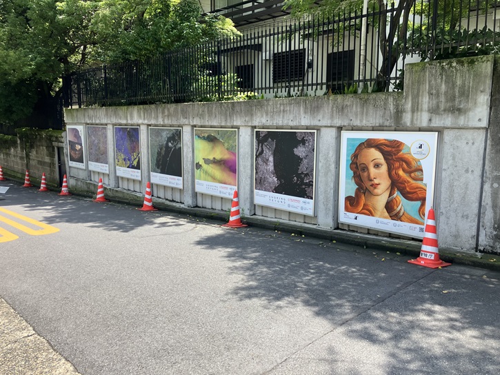 大使館の外壁にはイタリアらしいポスターが貼られています。最初に訪れた2021年はダンテ没後700年に当たり、記念のポスターが貼られていました。