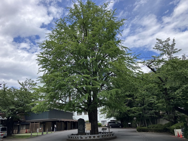 ginkgo-tree. In 1926 the tree was designated a "Natural Monument" by the Government. It measures nearly 10 meters in girth and 20 meters in height, although its trunk was burnt and perhaps it's the oldest of its kind in Tokyo, broken by an incendiary bomb toward the end of the last war.