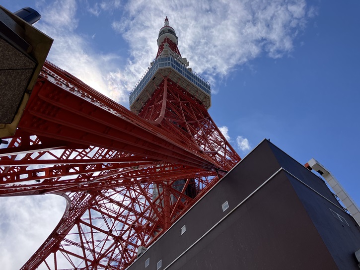 スタート地点は東京タワーです。東京タワーの正式名称は「日本電波塔」で、昭和三十二年(1957年)6月29日に着工し、昭和三十三年(1958年)12月23日に竣工しました。東京タワーの高さは333メートルで、塔脚の中心を基準とした塔脚の間隔は88メートルとなっています。総工費は当時のお金で約30億円、1年半と延べ22万人の人員を要して完成しました。