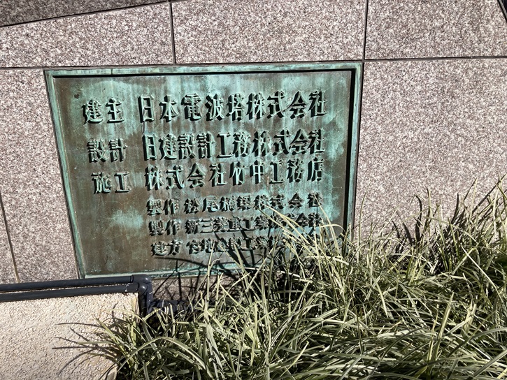 東京タワーの建主は、「大阪の新聞王」と呼ばれていた前田久吉が設立した日本電波塔株式会社(2019年10月1日に「株式会社TOKYO TOWER」に改称)です。設計は、建築設計の構造力学を専門とする学者で、戦艦大和の鉄塔や名古屋テレビ塔や大阪の通天閣の設計も行い、さらに数十本におよぶラジオの電波塔を設計した実績があり、日本の塔設計の第一人者である内藤多仲と日建設計株式会社が共同で行いました。施工はゼネコンの竹中工務店、塔体加工は新三菱重工(現在の三菱重工業)と松尾橋梁、鉄塔建築は宮地建設工業(現在の宮地エンジニアリング)が請け負いました。それぞれの名称を記したプレートが塔の基礎部分に嵌め込まれています。
