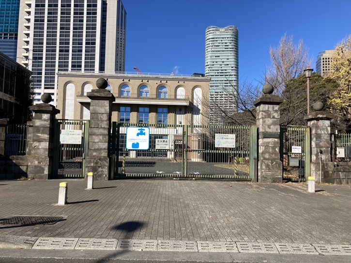 神谷町駅から「スウェーデン王国大使館」に向かいます。2021年に通った時には未だ旧ホテルオークラの特徴ある塔屋があったのですが、2024年に再訪した時にはホテルの敷地はすっかり更地になっていました。奥にはオフィスビルかと見間違うような新館が建っています。