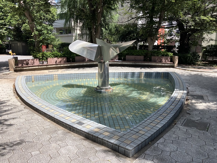 狸穴公園は、狸穴坂下の右手の閑静な住宅街にある公園です。園内には彫刻のある街づくり事業に基づいて設置された「風水の刻」の噴水があり、噴水池の周りに設置されたベンチで休憩や読書ができます。公園の傾斜地に植えられた港区の花「あじさい」が梅雨の季節を爽やかに彩ります。