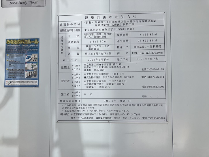 六本木ヒルズから「櫻田神社」に向かいます。六本木通りとテレビ朝日通り、それに外苑西通りに囲まれた西麻布三丁目一帯が更地になっています。櫻田神社も暫くの間遷座されているとのことです。「西麻布三丁目北東地区第一種市街地再開発事業」は、六本木ヒルズの西側に住宅・事務所・商業・ホテル機能を導入した地上54階・地下4階・高さ200m・延べ面積96、826uの超高層ビルを整備するものです。2024年9月下旬に着工し、2028年4月下旬の竣工を予定しています。櫻田神社はビルの南側に戻って来ることになっています。