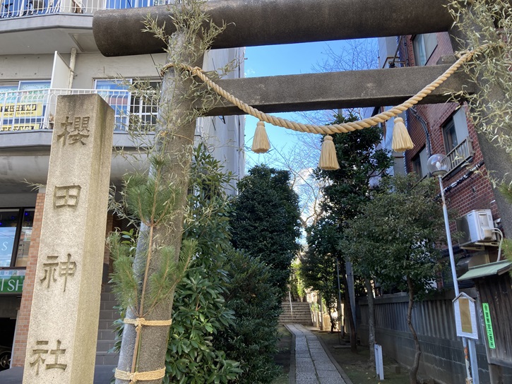 櫻田神社は、治承四年(1180年)に霞山桜田明神として今の霞が関の桜田門辺りに創建されました。源頼朝は奥州征伐の際に神社に神領を寄進しましたが、その際に他の田と区別するために桜の木を畔に植えたところ、この桜が大いに茂ったことから「桜田」と呼ばれるようになりました。寛永元年(1624年)に社地が江戸城御用地となったため、代地として麻布の地に移されました。写真は2021年に訪れた際のものです。