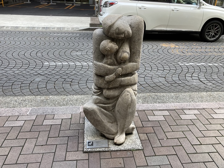麻布十番一帯には外国の大使館が多いという特徴を活かして、アートによる街おこしが行われています。「微笑みのモニュメントシリーズ」は、12ヵ国の大使館の協力で創られた12の微笑みのモニュメントと、日本の作家2人の作品の合計14体のアートモニュメント作品から成っています。「微笑みのモニュメント 父と子」は、ジンバブエ共和国の芸術家の作品です。「母と子」でないところが面白いですね。