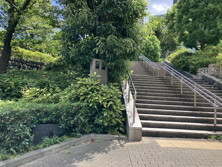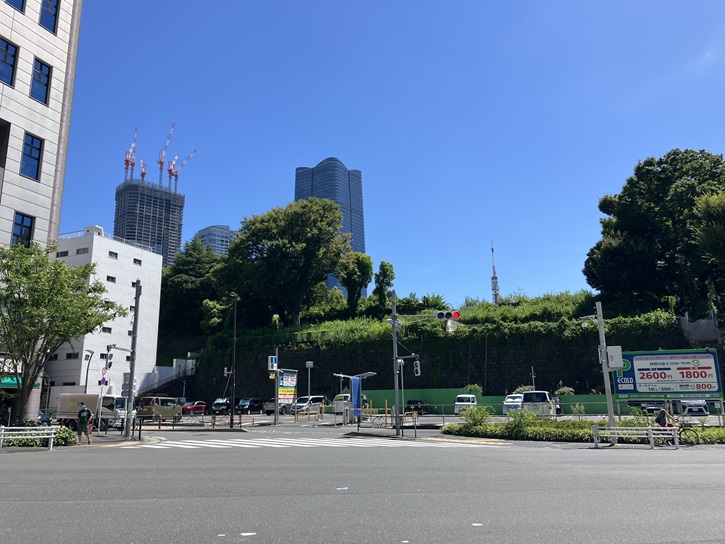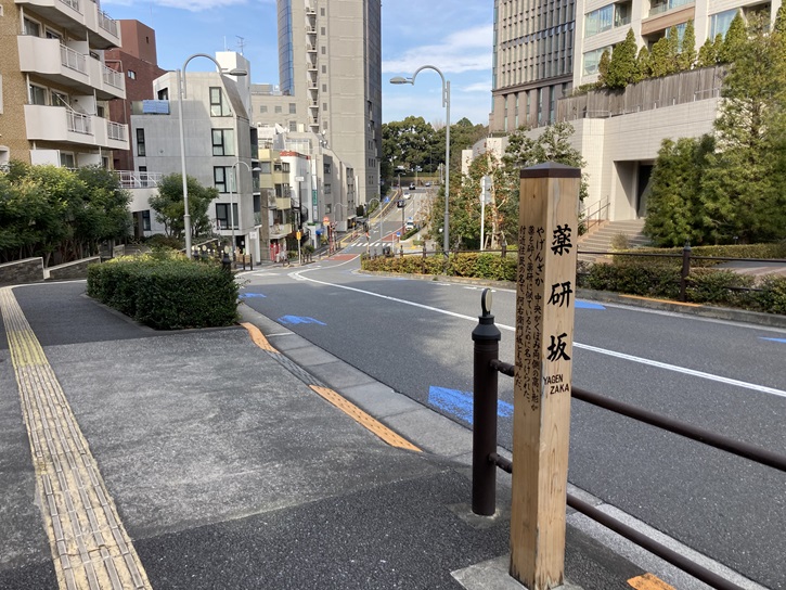 スタート地点の東京メトロ・都営地下鉄大江戸線六本木駅から歩き始めます。ミッドタウン・タワー裏手の檜町公園の北東側に緩やかな坂が下っています。