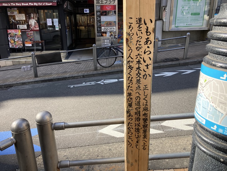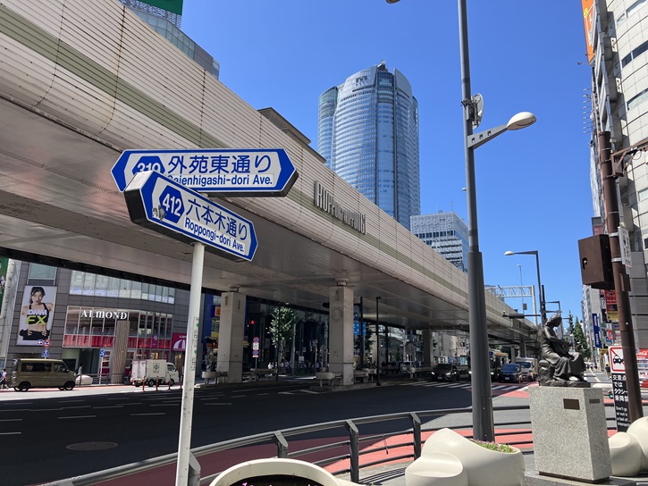 芋洗坂から「六本木交差点」に向かいます。といっても、芋洗坂の坂上は六本木交差点に面しているのですけど。