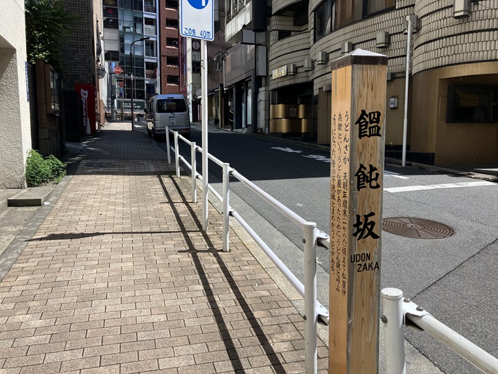 ちなみに、芋洗坂の坂上手前から外苑東通りに向かって短い坂が上がっています。饂飩坂は長さが約60mほどの坂で、坂名はかって坂の脇にうどん屋があったことに因みます。