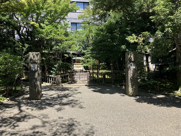 乃木家祖霊社の手前に石造りの灯籠が対で建っています。