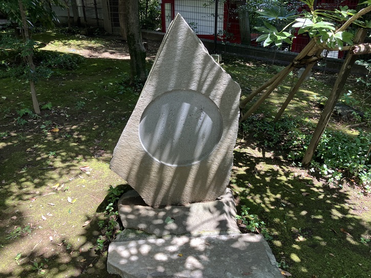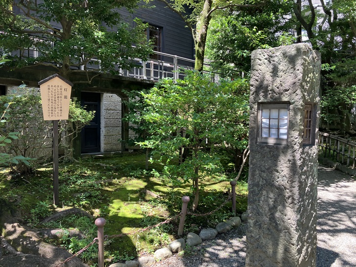 石材は門柱として準備されましたが適当でなかったため、そのまま邸内に保存してあったものを死去後親族が灯籠として建てたものです。
