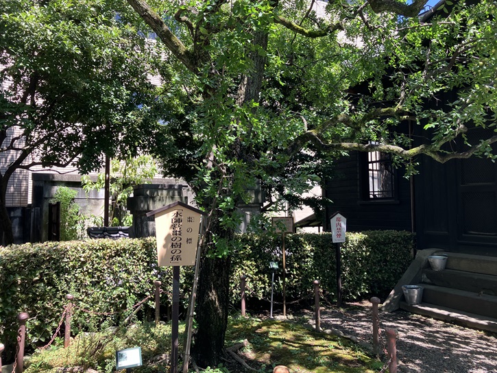 旧乃木邸には、何本かの由緒ある樹があります。この木は、旅順要塞を攻略した後に乃木希典大將とステッセリ将軍が会見した水師営の庭に植えてあった棗(ナツメ)の木の孫にあたるとのことです。