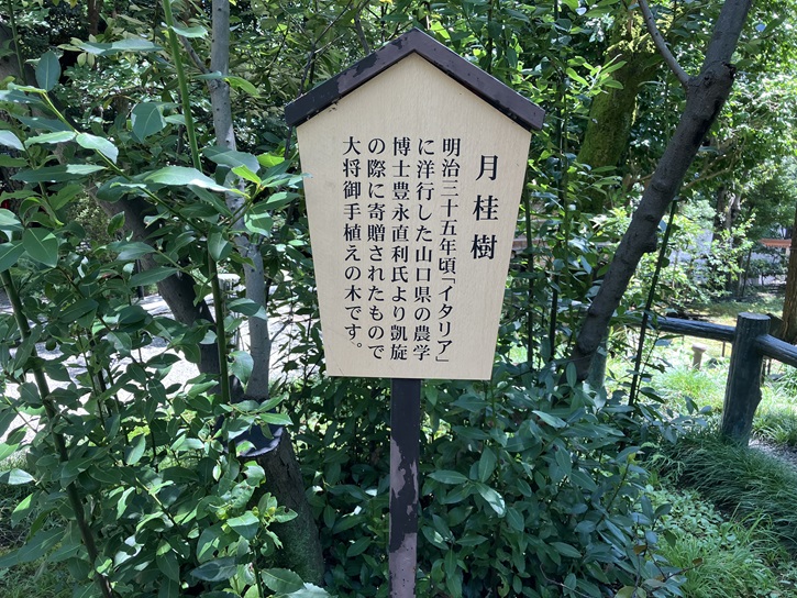 明治三十五年頃「イタリア」に洋行した山口県の農学博士豊永直利氏より凱旋の際に寄贈されたもので大将御手植えの木です。