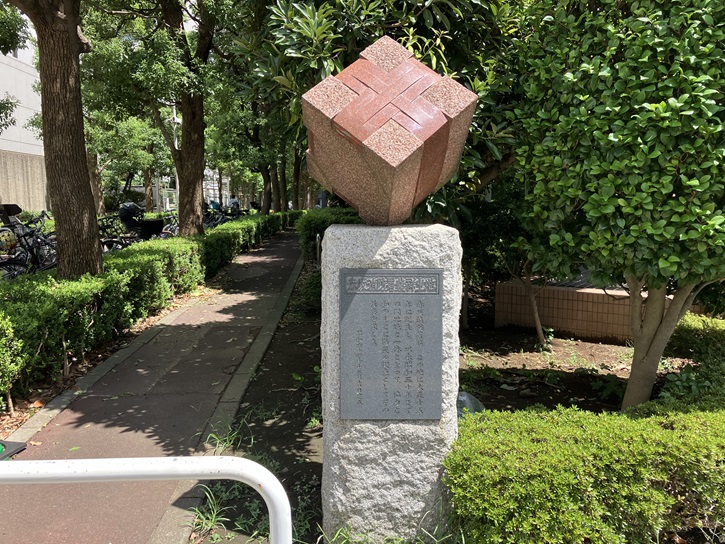 乃木邸から「青山一丁目」に向かいます。外苑東通りが青山一丁目交差点の手前でクランク状に曲がる角に消防のモニュメントが置かれています。