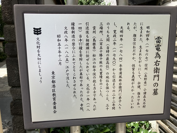 報土寺には江戸時代の伝説の力士である雷電為右衛門のお墓があります。
