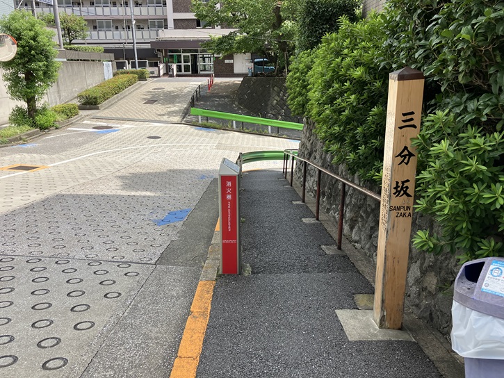 坂名は江戸時代に急坂だったことで通る車賃を銀三分増しにしたことに由来します。三分坂は「さんぷんざか」と読むんですね。