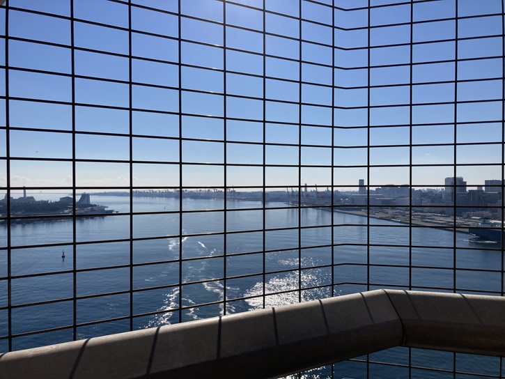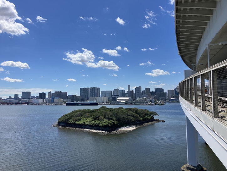 サウスルートでは、お台場や大井コンテナターミナルなどの港湾施設を眺めることができます。