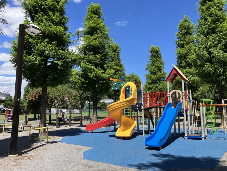 遊具広場には、シーソーやブランコ・砂場や鉄棒・幼児用の滑り台から大きな滑り台まで沢山の遊具がありますので、小さな子供から小学生まで楽しく遊べます。