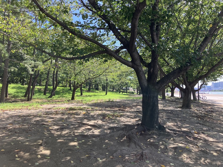 お台場公園では、桜並木の植樹が進められています。