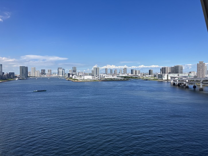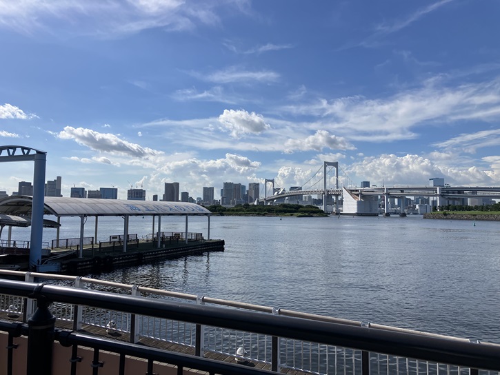 レインボーブリッジはお台場側が彎曲しているので、ノースルートのお台場側の橋上から全景を見るのがお勧めです。