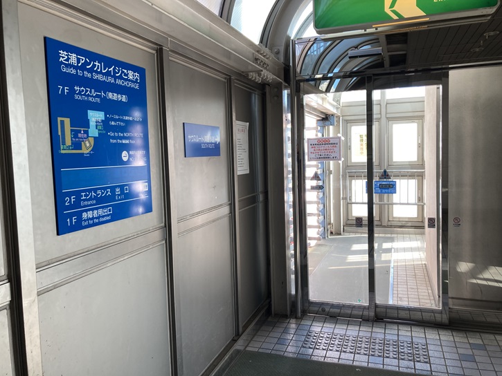 芝浦アンカレイジに着きました。7階からエレベータで1階に下り、北側遊歩道(ノースルート)に向かいます。