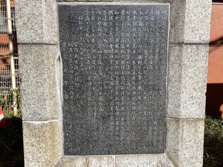 昭和十三年(1938年)聖蹟公園として整備開園するに当たり、その由来を記して東京市が建てたものである。