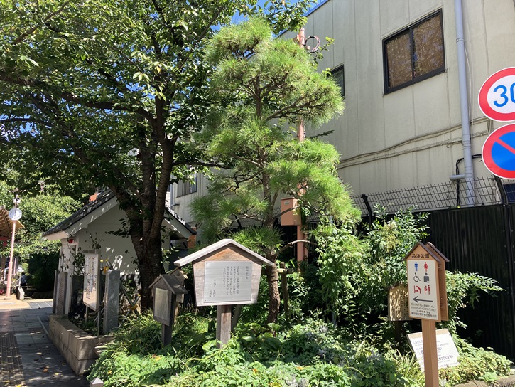 この松は、東海道が取りもつ縁で四十九番目の宿場町、土山宿より寄贈されたものです。土山宿はいち早く、「東海道の歴史性を生かしたまちづくり」を提唱され、東海道五十七次のリーダーとして宿間の交流、ネットワークづくりに多大な貢献をされています。この松は、両宿の友好のシンボルとして三十年、五十年と地域の方々と共に大切に育ててまいります。品川宿にはこの他にも、東海道の宿場町から同様の趣旨で寄贈された街道松が植えられています。