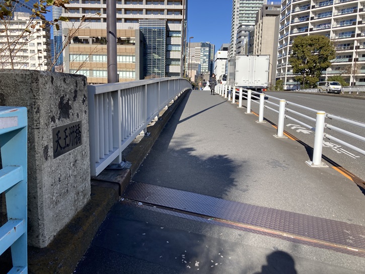 品川浦から旧海岸通りに出ます。天王洲橋を渡った先で運河沿いの遊歩道に入ります。