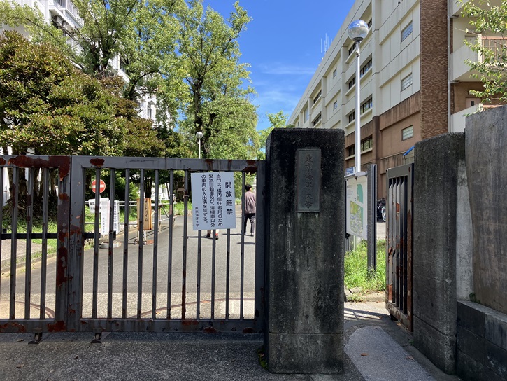 楽水橋を渡った先に東京海洋大学の裏門があります。東京海洋大学は、明治八年(1875年)に、大久保利通が岩崎弥太郎に命じて設立させた三菱商船学校が起源となっています。海洋研究において国内最高峰の研究機関で、特に海洋資源分野・船舶分野においては世界的に高い研究成果を誇っています。少数精鋭の学生に対して船舶実習を行うなど、実践的な習得を重視した大学でもあります。東京海洋大学は、共に120年以上の歴史を持つ名門の東京商船大学と東京水産大学が平成十五年(2003年)10月に統合して開学しました。両校とも、日本の明治の発展を支えた超名門学校でした。