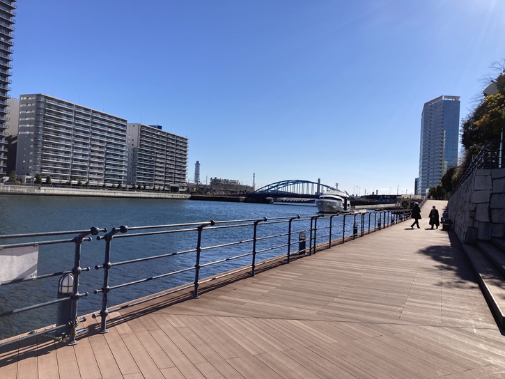 天王洲運河沿いに設置された遊歩道(ボードウォーク)は、春には梅や菜の花が咲く憩いのスポットです。所々に椅子が用意され、人通りも少ないので、運河を眺めながら休息することができます。