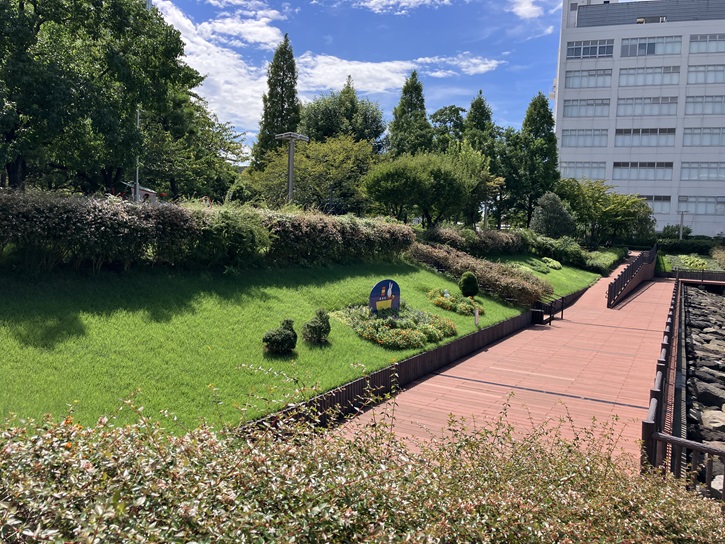 公園の多目的広場には、人口芝が敷き詰められていて、本格的にサッカーや野球を楽しむことができます。運河沿いに位置し、高層ビル群が近いため、夜景がきれいな公園としても知られています。