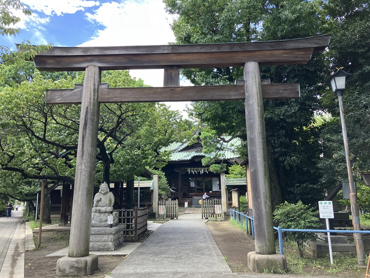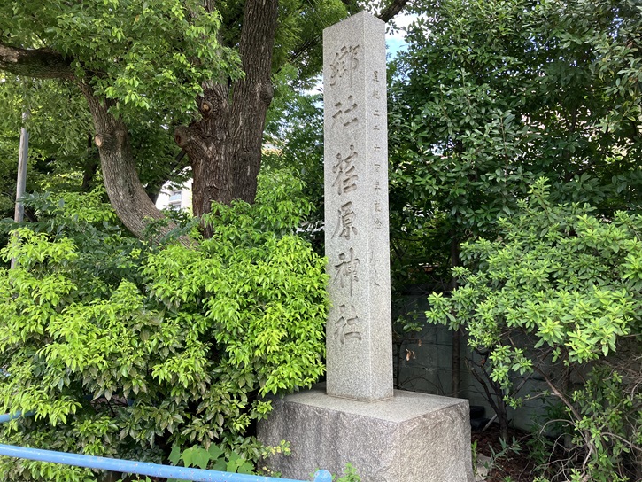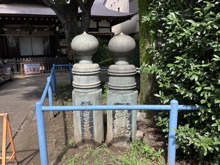 荏原神社の境内には、鎮守橋のかっての親柱が保存されています。