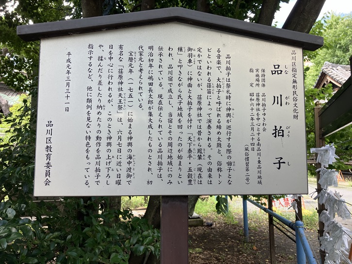 6月初旬には天王祭が開催され、神輿の動作指示は「品川拍子」で行われます。