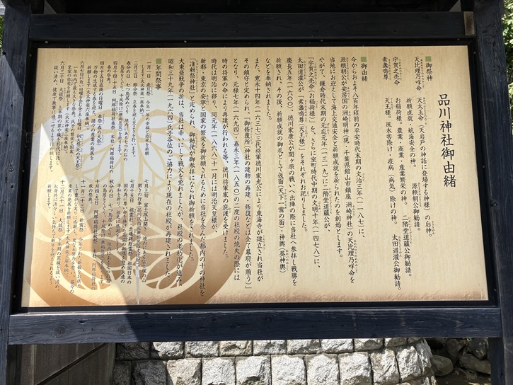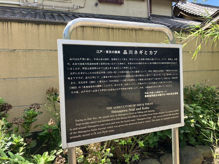 境内には、「品川ネギとカブ」の案内板があります。あちこちの神社には、JA東京が制作した地元に古来から伝わる江戸・東京野菜の歴史を解説した案内板が立っていますね。